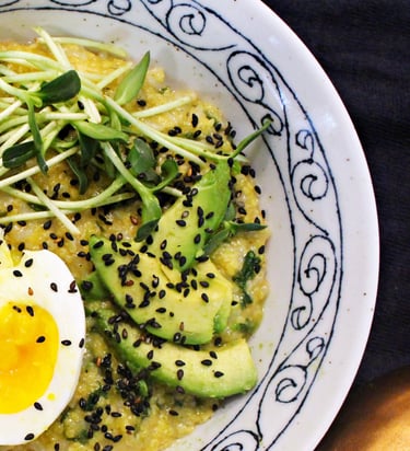 This recipe is a great one for meal prep! It's also super-versatile: hold the toppings and instead bathe the bed of risotto in sliced mushrooms simmered in soy or tamari sauce (or coconut aminos!) for a yummy lunch or dinner option.
