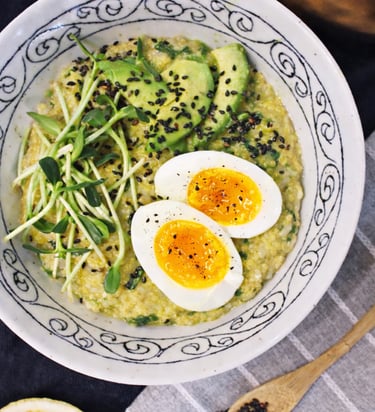 Nourishes Blood and Qi: The combination of eggs, leafy greens, and avocado provides essential nutrients like iron, healthy fats, and protein — ideal for replenishing blood and boosting qi in Traditional Chinese Medicine.