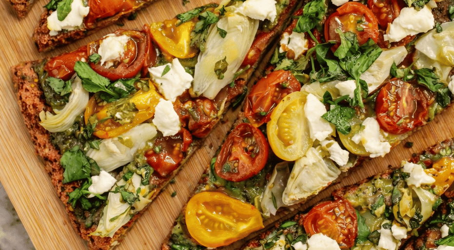 For this tomato and artichoke pizza, beets are the headliner, paired with amaranth flour, an ancient grain so nourishing it's said that the Aztecs historically used it to ward off malnutrition. We've also incorporated tomatoes, artichokes and watercress - all of which nourish blood deficiency symptoms in the body. A friendly dab of goat cheese, which is easier on the digestive system than many other dairy products (and also a blood tonic!), rounds out this mouth-watering medley of flavors.